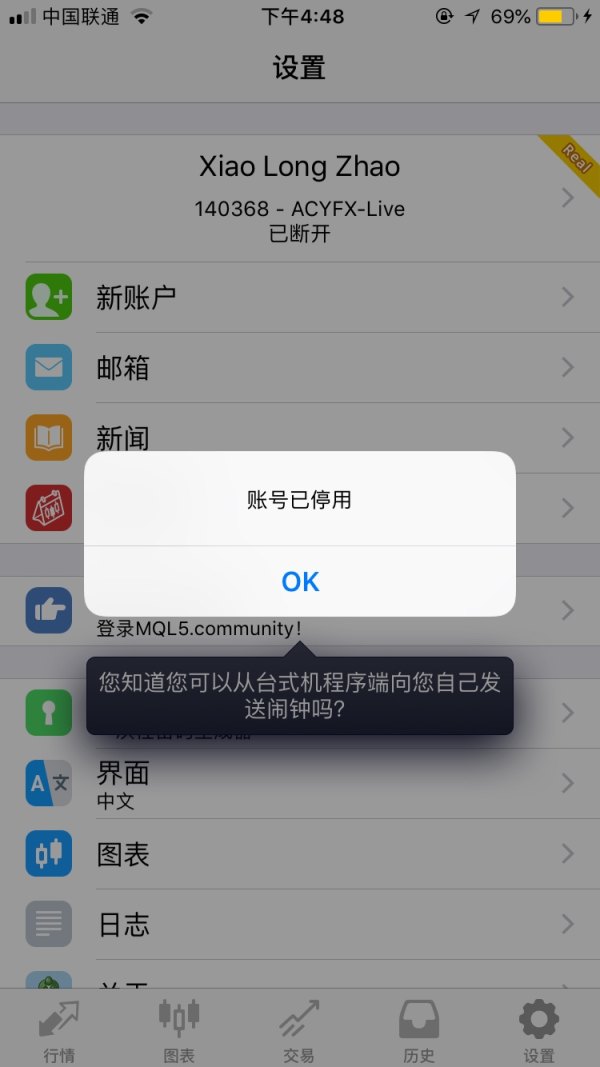 本人通过外汇110平台推荐acy稀万赠金活动前后在该平台入金后 经常长时间掉线 滑点篡改数据 起初以为是偶然的后来经常出现且频繁发生金额对不上的情况 后来跟客服沟通后直接封停账户删除数据 本人已将提前准备好的资料递交警方 且已经进行了证据保存 希望大家不要再受害及时醒悟 本人在acy共计亏损46万 也希望大家积极提供犯罪线索早日讲该公司的犯罪分子绳之以法