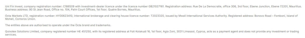 OCTA offering a decent security for traders, because they are regulated and licensed. Plus, they use segregated accounts to keep clients funds separately, which is important.