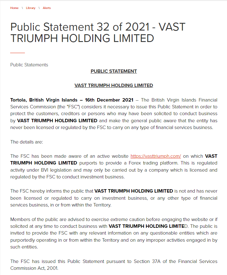 Публичное заявление 32 от 2021 г. - VAST TRIUMPH HOLDING LIMITED