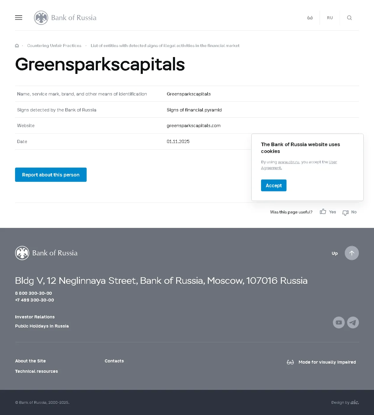 Список организаций с выявленными признаками незаконной деятельности на финансовом рынке Greensparkscapitals.