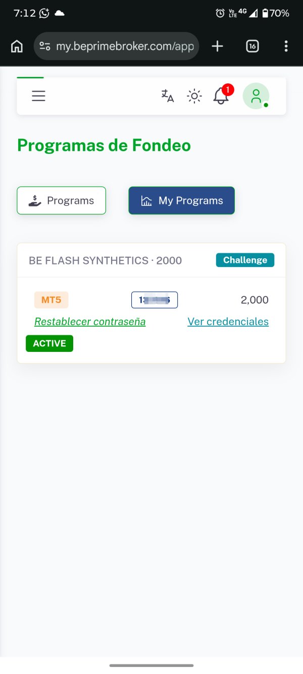 compré una cuenta de fondeo la que denominaban be flash pase la prueba y no me dejó hacer retiros bloquearon mi cuenta y se quedaron con el dinero, no contestan a soporte, solo respondieron automáticamente con su programación hasta que llegó la finalidad de la última actualización y ya parece una página muerta. además la verificación de documentos nunca se consedio una estafa total un compañero de trading le banearon su cuenta de 125000 dólares y no responden tampoco