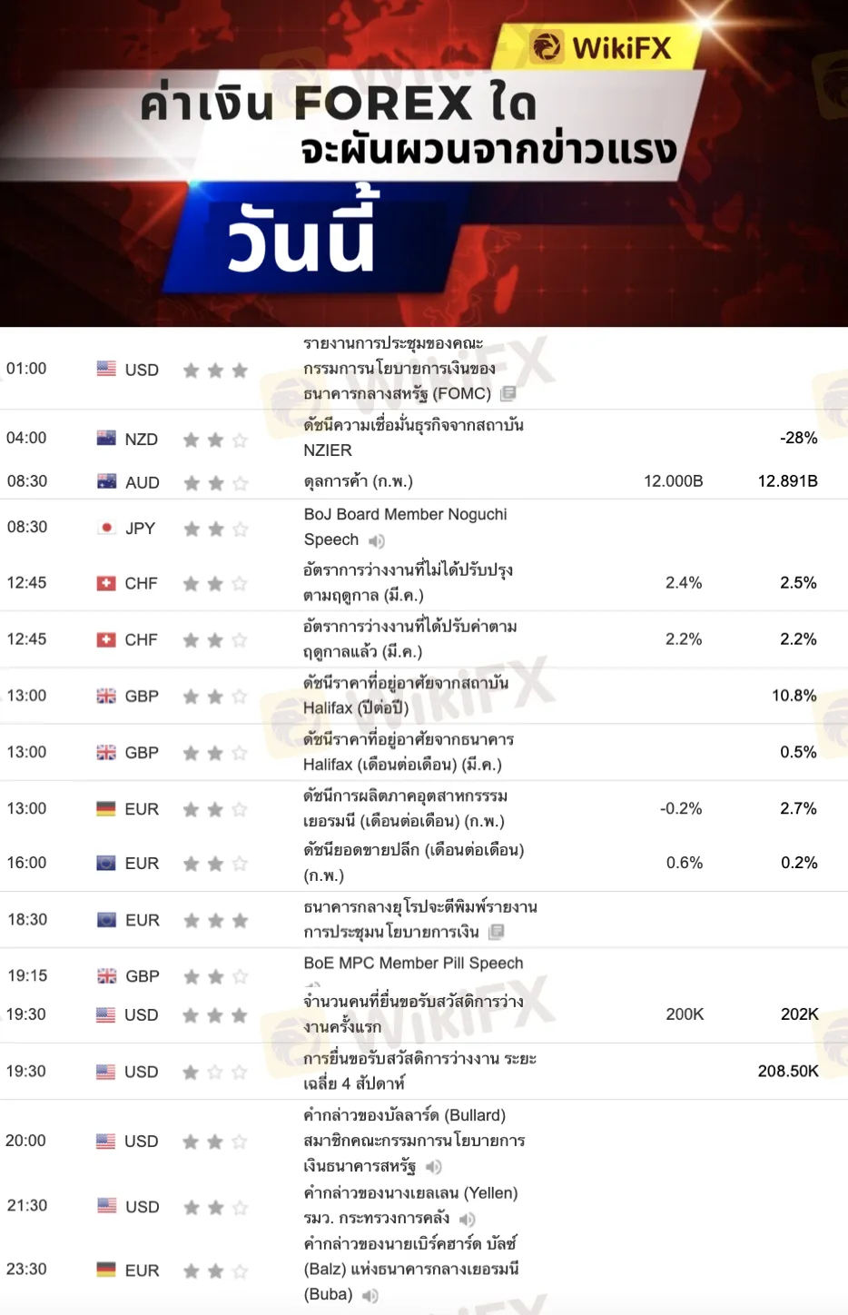 ตารางข่าว Forex ประจำวัน (7 เมษายน 2565)