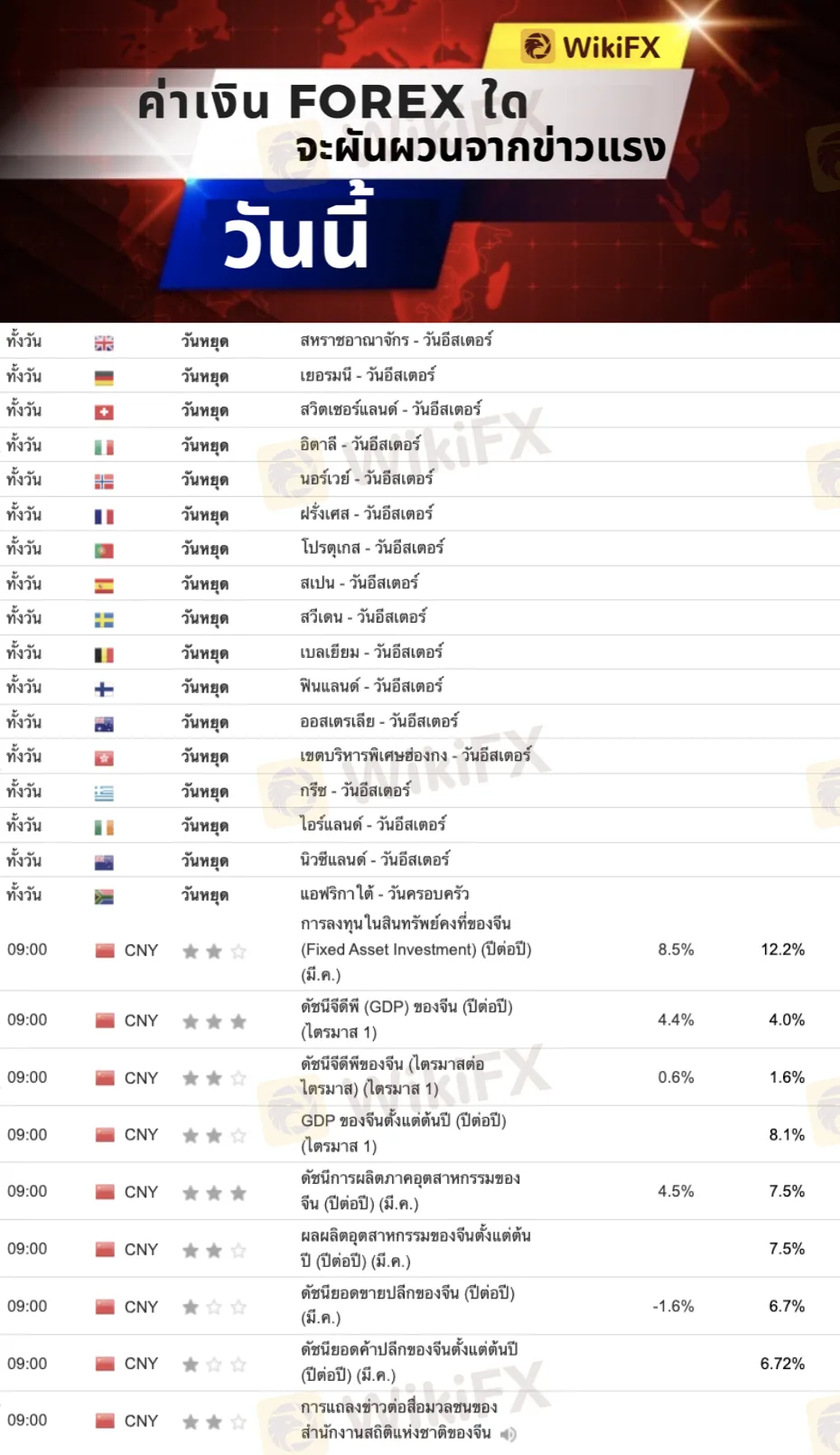ตารางข่าว Forex ประจำวัน (18 เมษายน 2565)