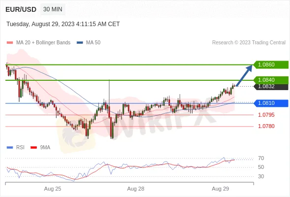 การตั้งค่า: ตำแหน่ง Long ข้างบน 1.0810 ด้วยเป้าหมายที่ 1.0840 และ 1.0860 ในการขยายต่อ
