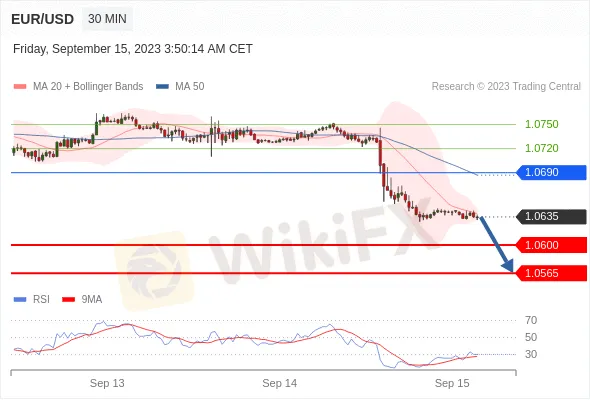 การตั้งค่า: การเปิดตำแหน่งขายใต้ 1.0690 ด้วยเป้าหมายที่ 1.0600 และ 1.0565 ในการขยายต่อ