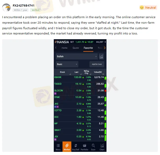 เนื้อหาการรีวิว: ฉันประสบปัญหาในการสั่งซื้อสินค้าบนแพลตฟอร์มนี้เมื่อเช้าตรู่ เจ้าหน้าที่ฝ่ายบริการลูกค้าออนไลน์ใช้เวลาตอบกลับนานกว่า 20 นาที โดยแจ้งว่า “มีพนักงานประจำช่วงกลางคืน” ครั้งที่แล้ว ตัวเลขเงินเดือนนอกภาคเกษตรผันผวนอย่างมาก ฉันจึงพยายามปิดออเดอร์ แต่ออเดอร์ก็ค้าง เมื่อเจ้าหน้าที่ฝ่ายบริการลูกค้าตอบกลับมา ตลาดก็กลับตัวกลับด้าน ทำให้กำไรของฉันกลายเป็นขาดทุน