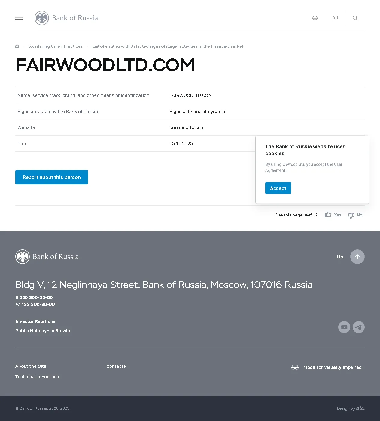 Danh sách các tổ chức có dấu hiệu hoạt động bất hợp pháp trên thị trường tài chính FAIRWOODLTD.COM.