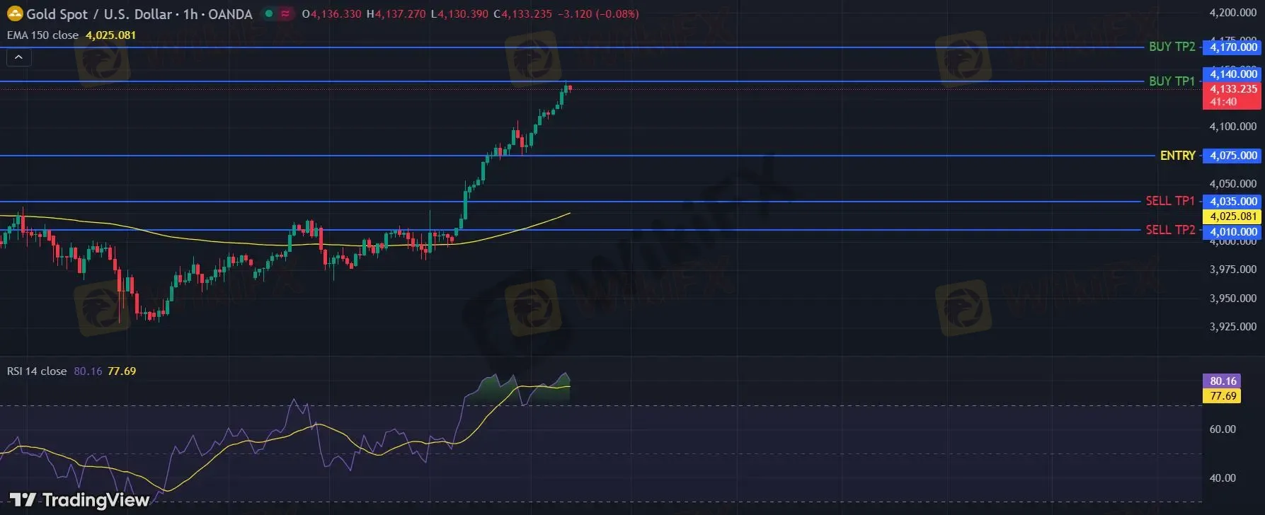 在 4075 之上,看涨,目标价位为 4140 ,然后为 4170 。