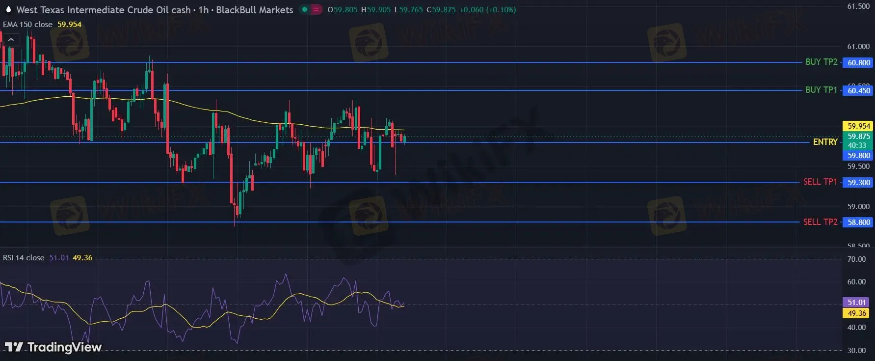 在 59.80 下,看空,目标价位定在 59.30 ,然后为 58.80。