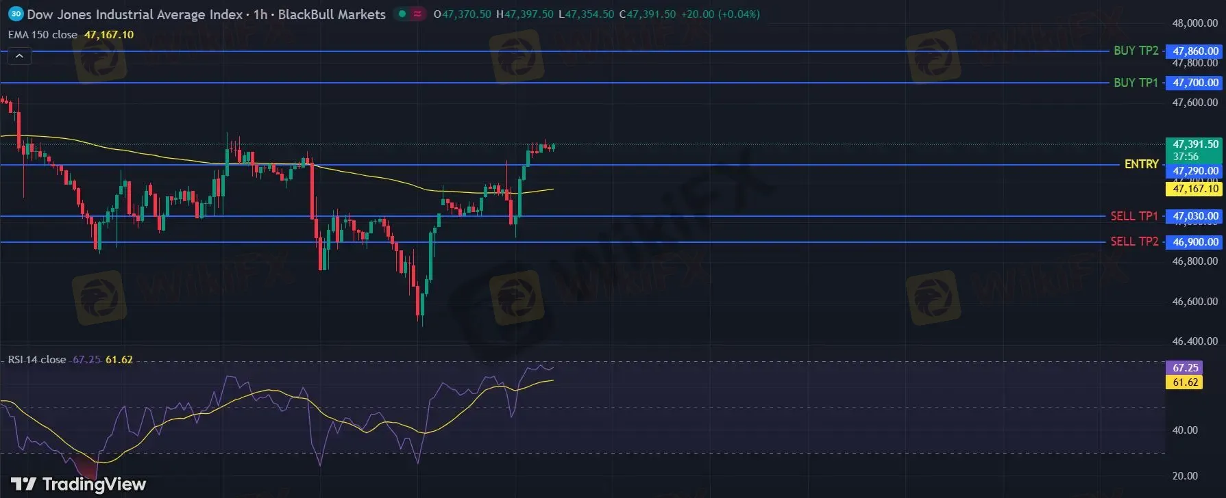 在 47290 下,看空,目标价位定在 47030 ,然后为 46900。