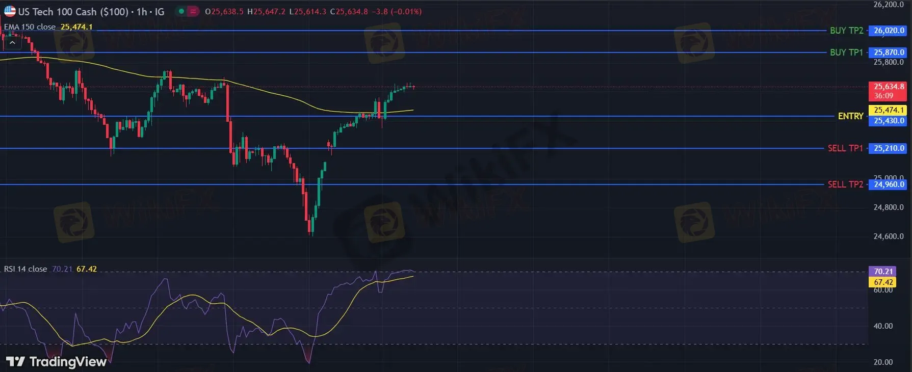 在 25430 之上,看涨,目标价位为 25870 ,然后为 26020 。