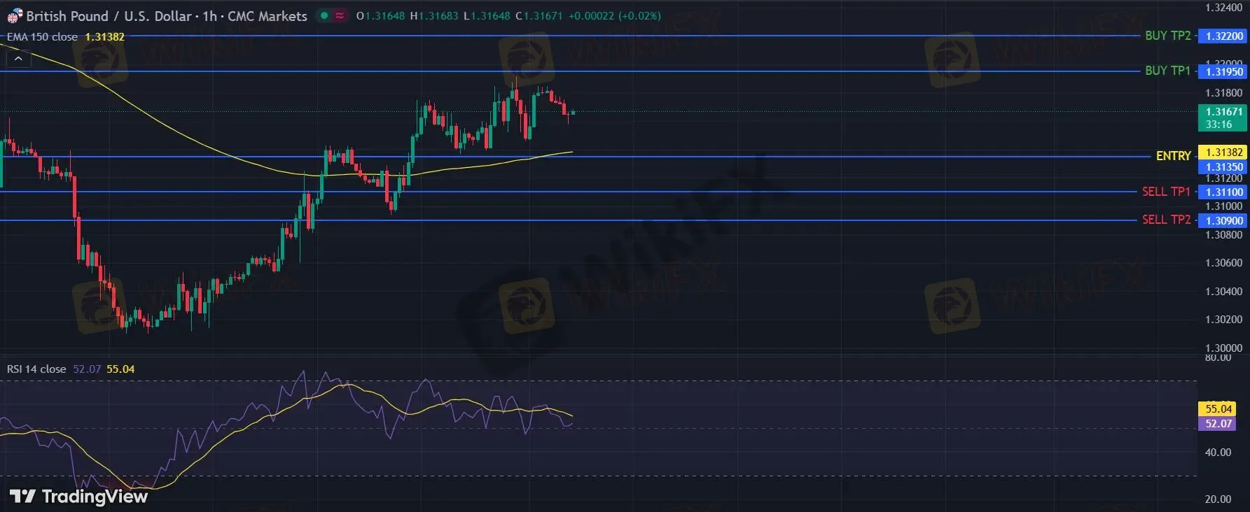在 1.3135 之上,看涨,目标价位为 1.3195 ,然后为 1.3220 。