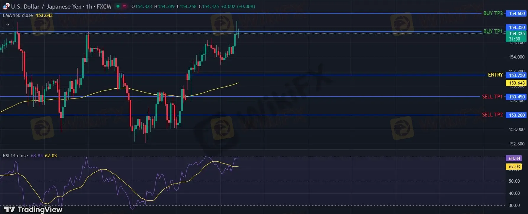 在 153.75 之上,看涨,目标价位为 154.35 ,然后为 154.60 。