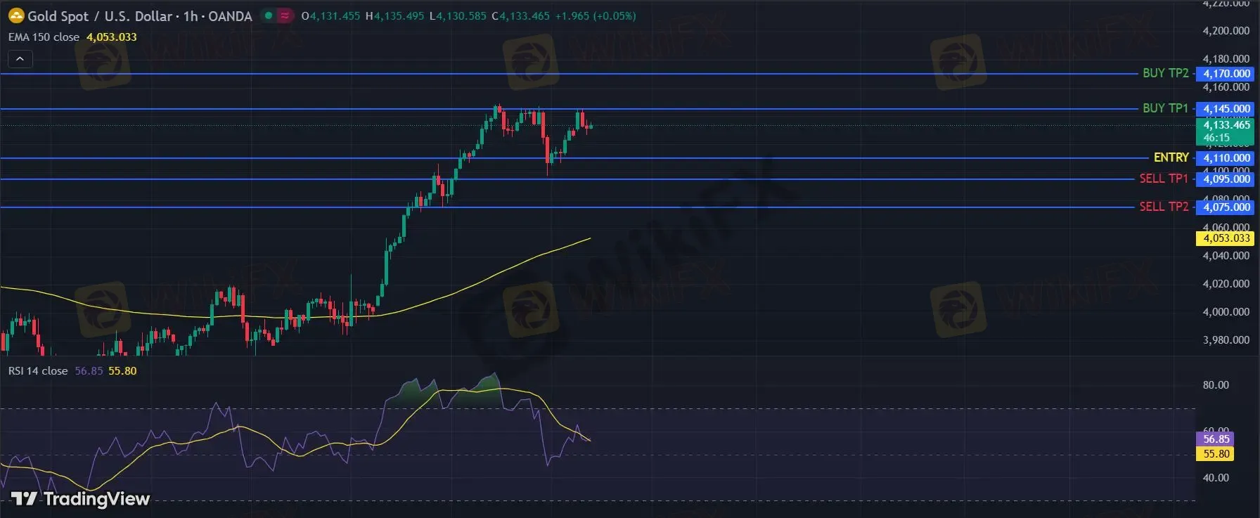 在 4110 之上,看涨,目标价位为 4145 ,然后为 4170 。