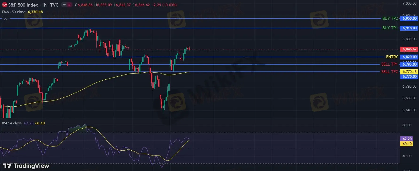 在 6820 之上,看涨,目标价位为 6918 ,然后为 6950 。