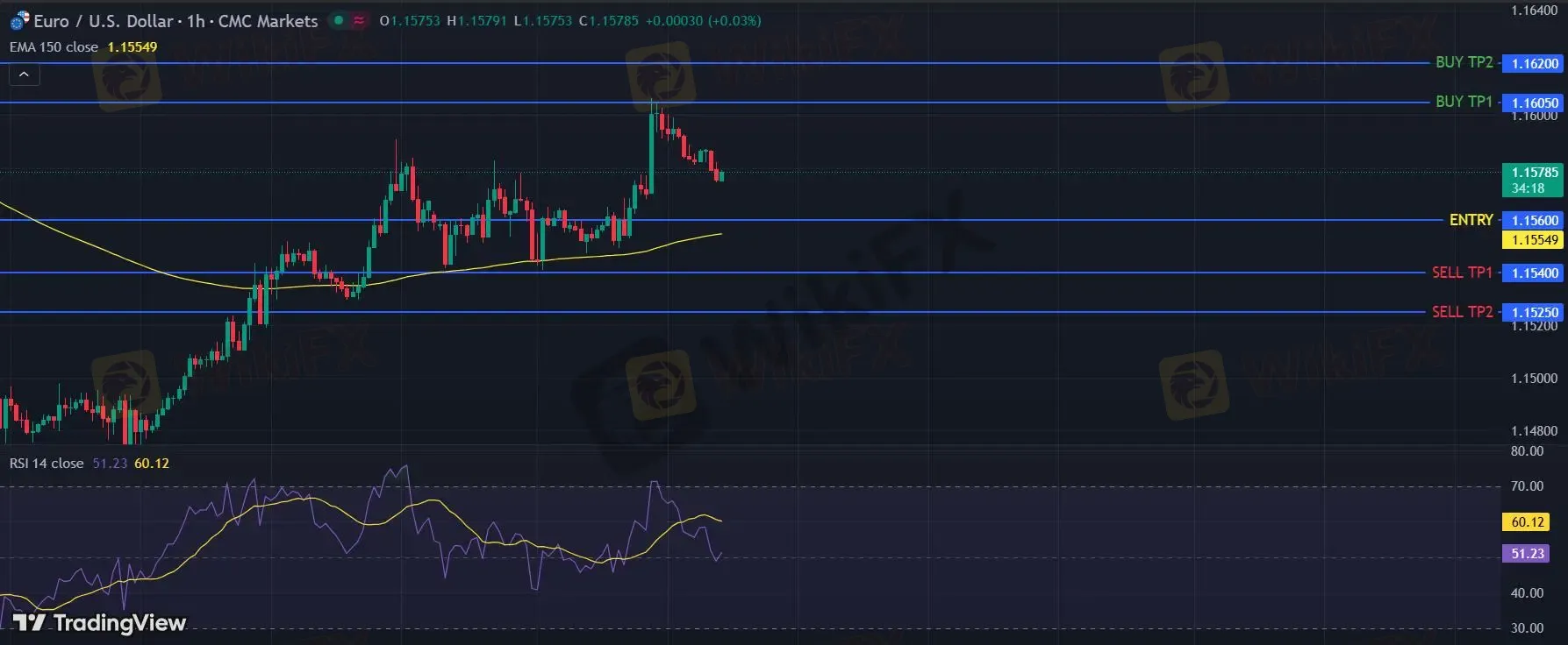 在 1.1560 下,看空,目标价位定在 1.1540 ,然后为 1.1525。