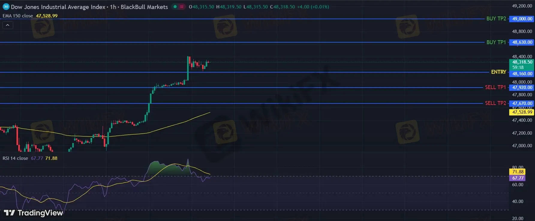 在 48160 之上,看涨,目标价位为 48630 ,然后为 49000 。