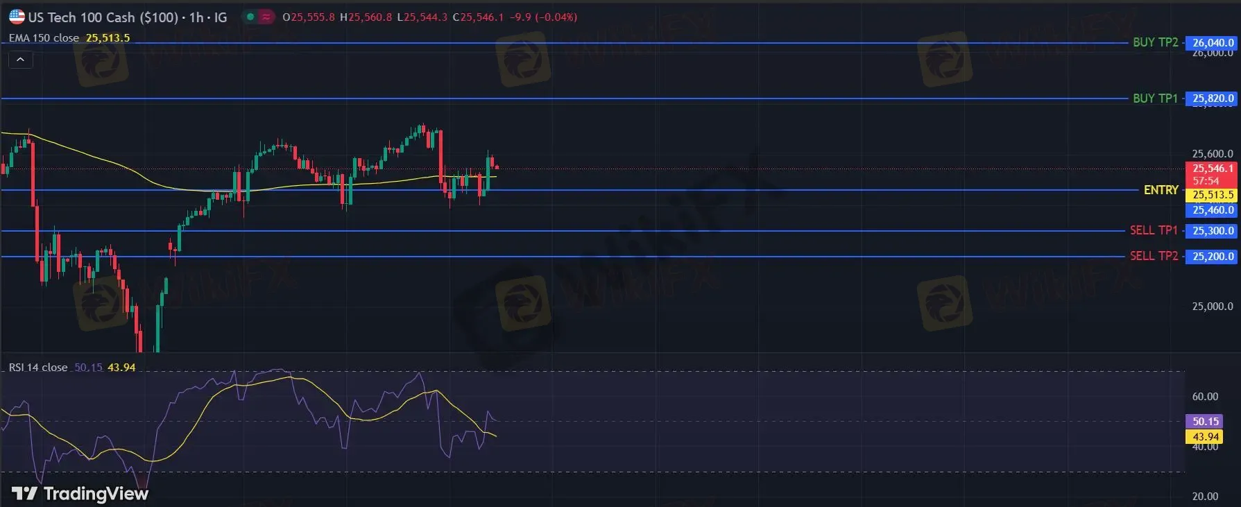 在 25460 下,看空,目标价位定在 25300 ,然后为 25200。
