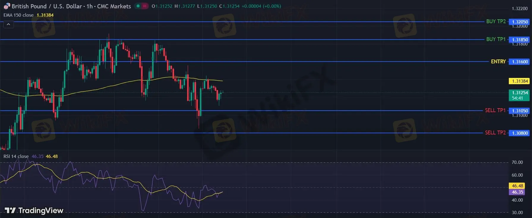 在 1.3160 之下,看跌,目标价位为 1.3105 ,然后为 1.3080 。