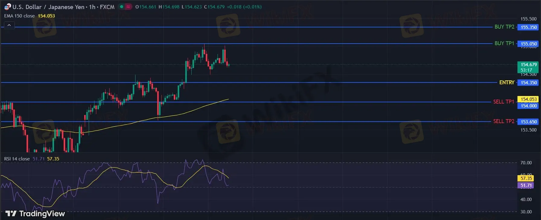 在 154.35 之上,看涨,目标价位为 155.05 ,然后为 155.35 。