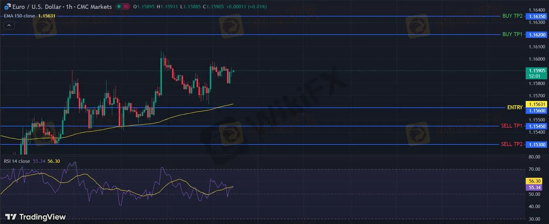 在 1.1560 之上,看涨,目标价位为 1.1620 ,然后为 1.1635 。