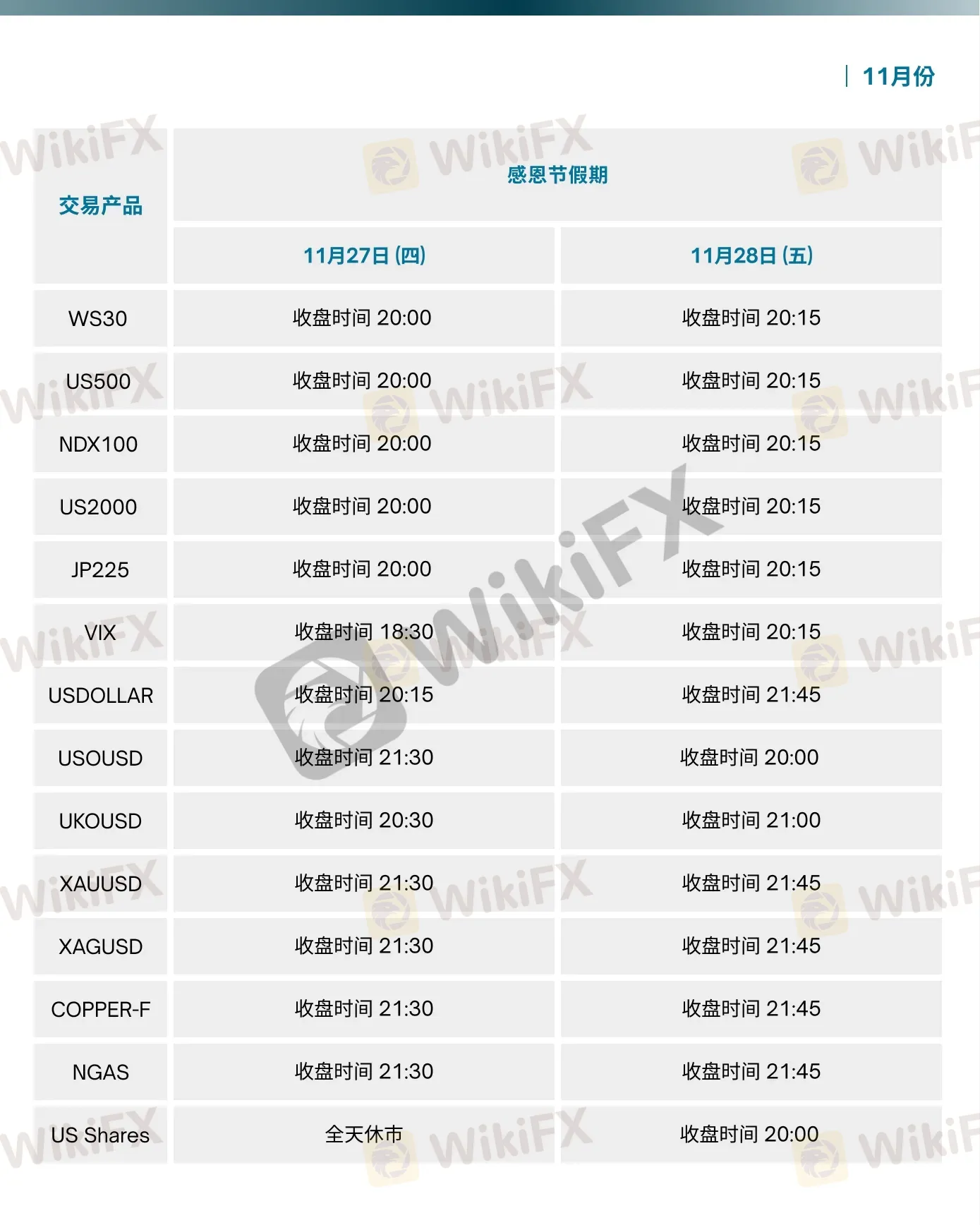 2025年 11 月交易时间调整通知