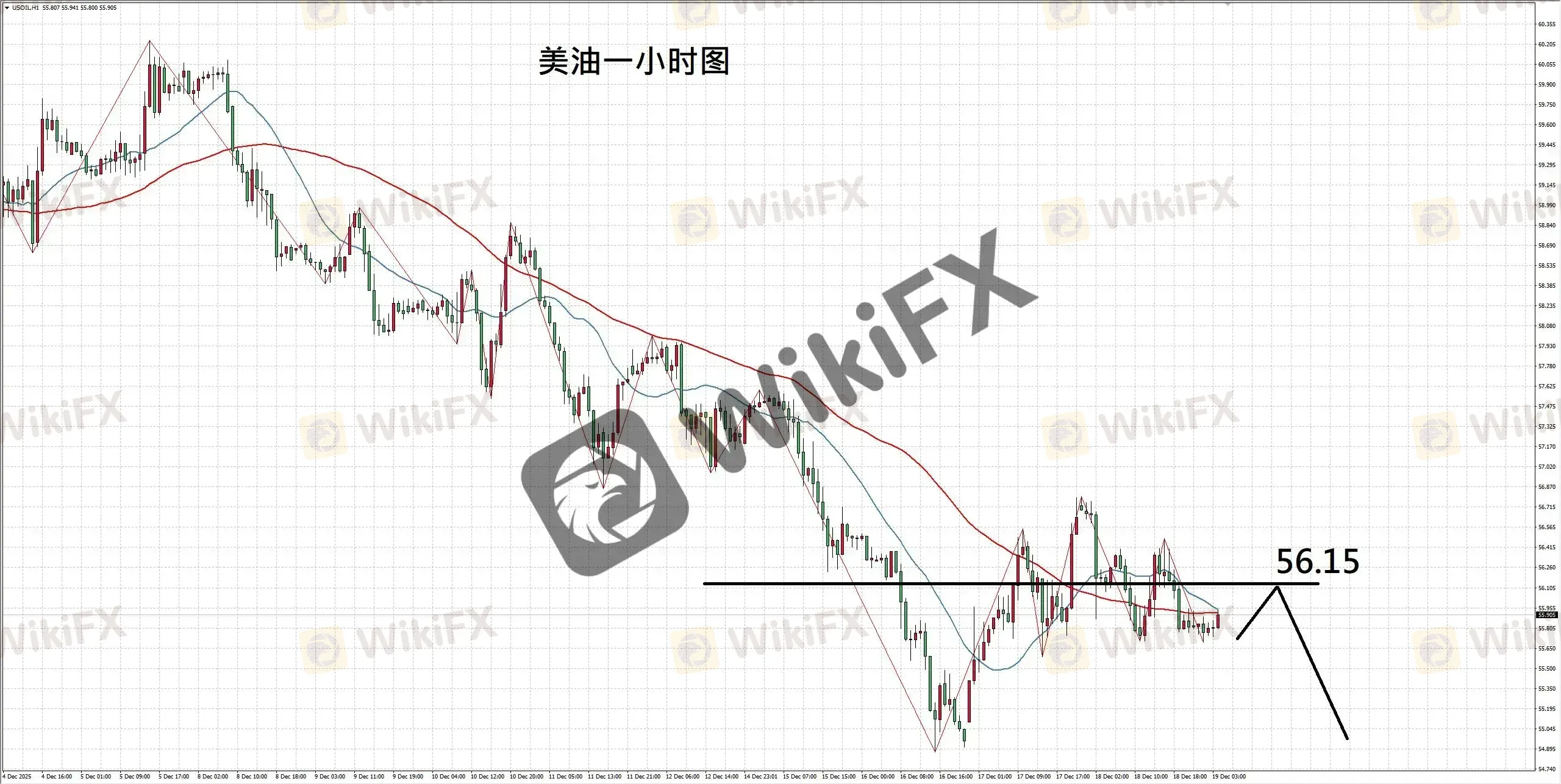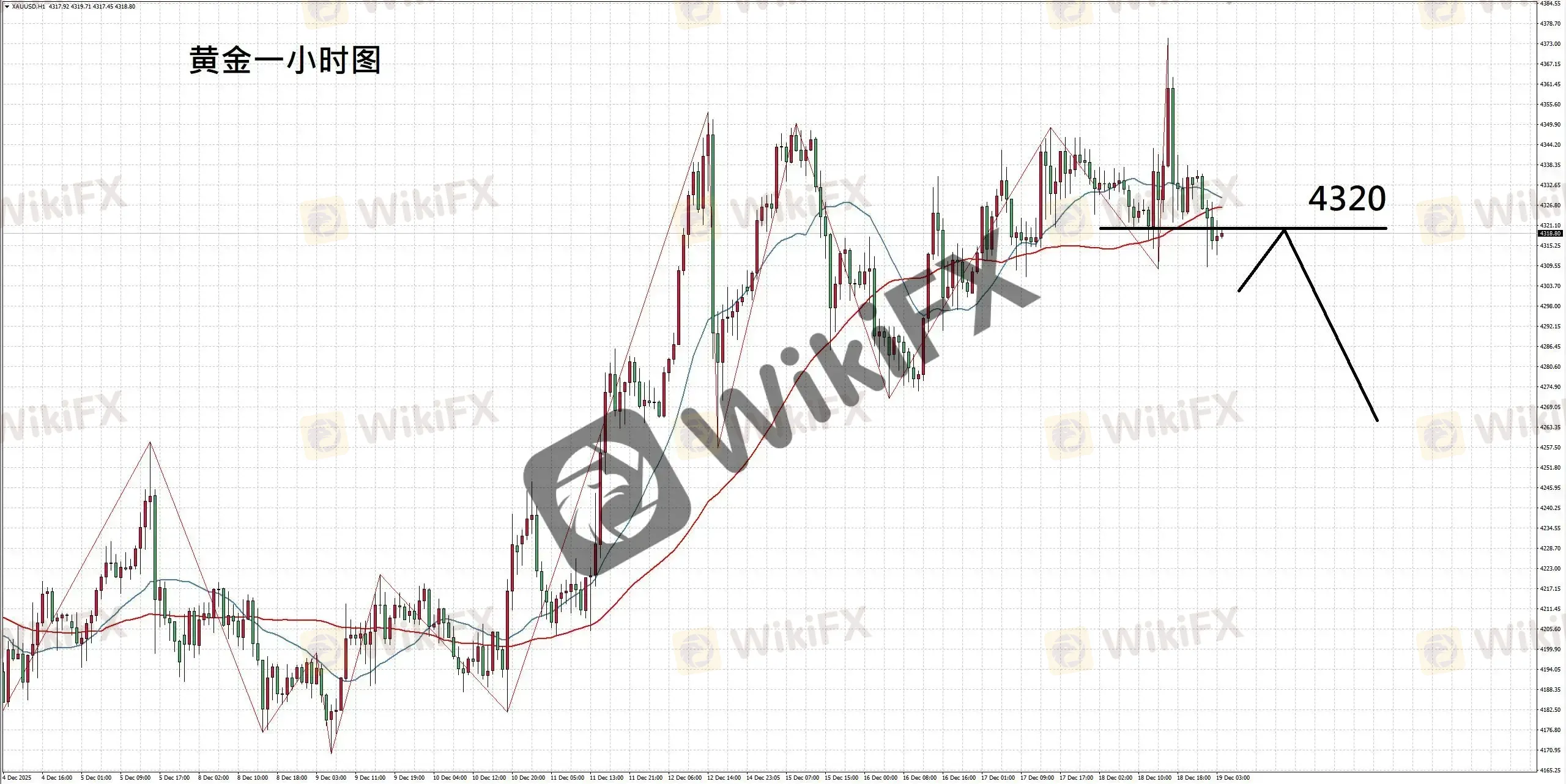 摘要:【基本面分析】昨日美国11月CPI年率自3%下降至2.7%,核心CPI年率也自3%下降至2.6%,或削弱美联储鹰派官员维持按兵不动的理由,加上美国总统特朗普有意推举鸽派人选作为新任美联储主席,一度推升黄金表现;不过就后市来看,随着本月度较重要的数据已经尽数披露,短期内黄金可能缺乏新的利多因素推动,伴随涨势过度延伸,应关注修正风险。【技术分析】黄金一小时图,走势冲高后向下回落,并击破前期支撑,反应卖