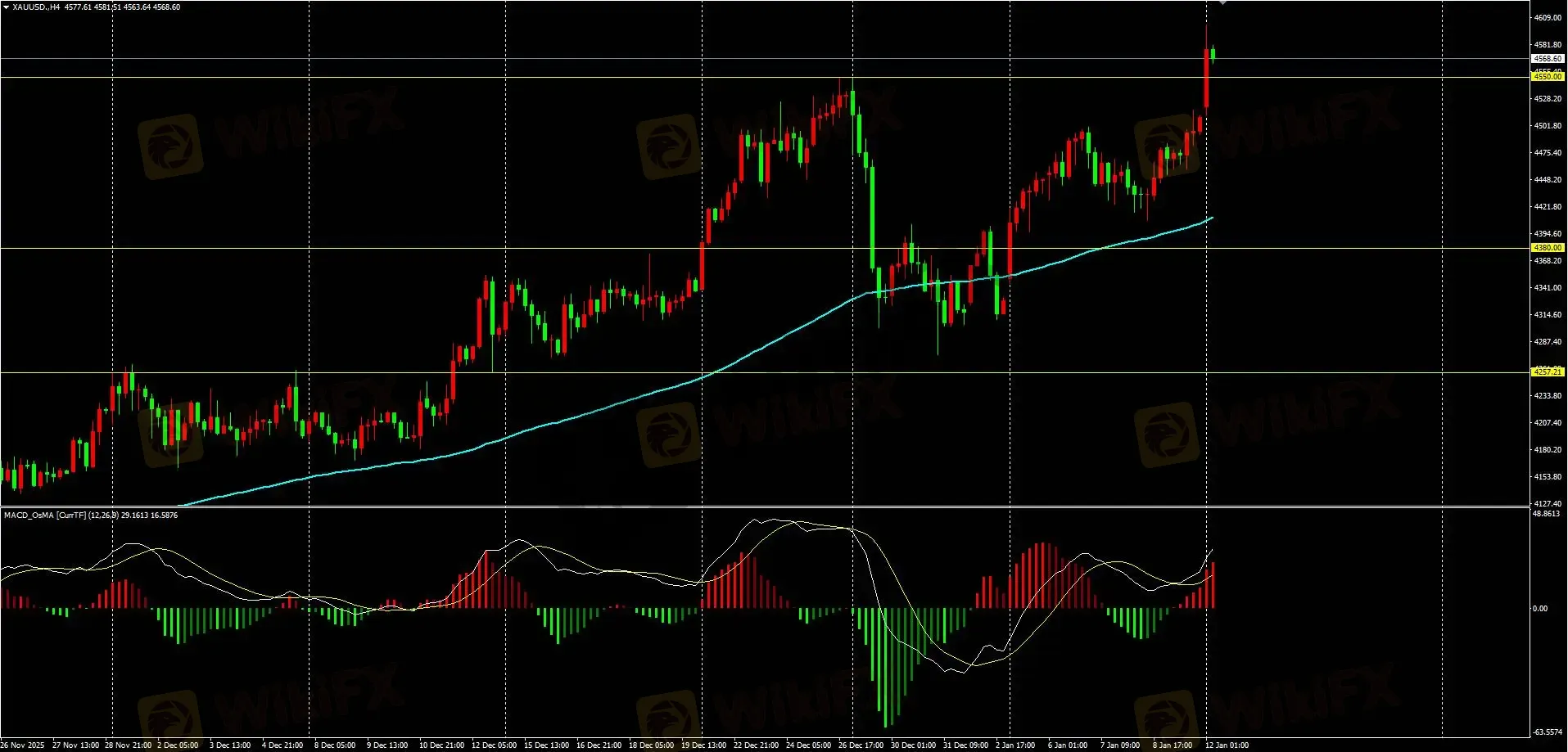 日内策略:上周震荡拉升,周线收阳,本周重点关注美国CPI数据。今日早盘大幅拉升,再创新高至4601.0,延续H4级别金叉,小周期上涨动能减弱,进入回调整理,短线支撑关注4562.0-4550.0结合M5周期144均线,完成下破可尝试轻仓短空,上方压力关注最高点4601.0,完成突破可继续尝试做多。