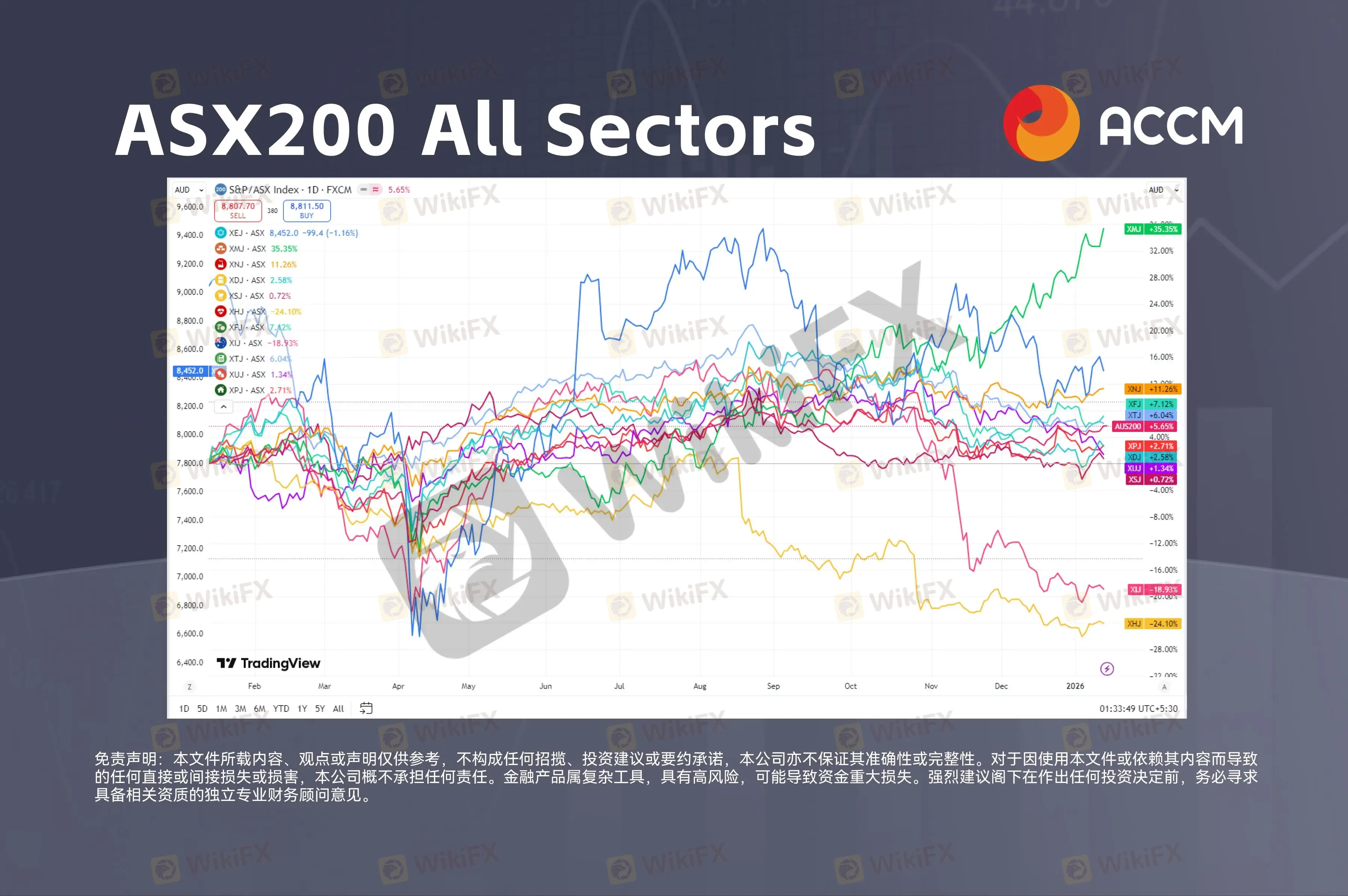 澳大利亚ASX200指数各板块表现对比,数据来源:TradingView