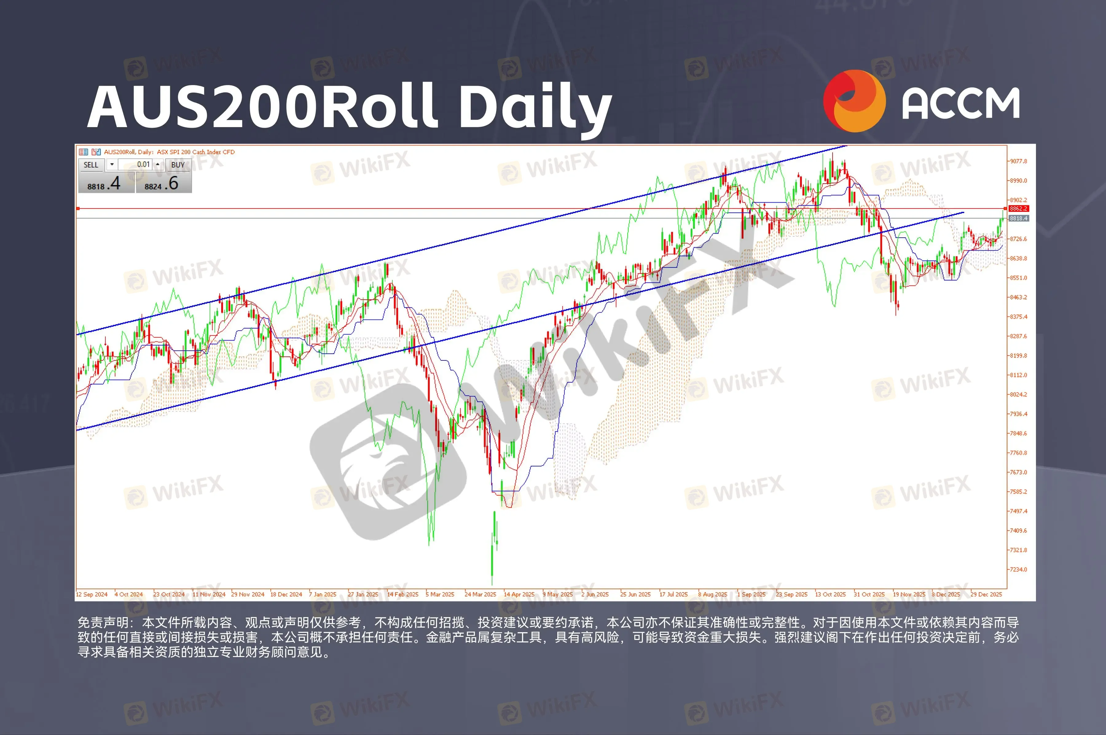 澳大利亚股市今日有望测试 8,862 点的关键阻力位。在去年 10 月下旬触及 9,115 点历史高位后,这一以大宗商品与金融服务为主的指数正展开第二轮偏多修复行情。