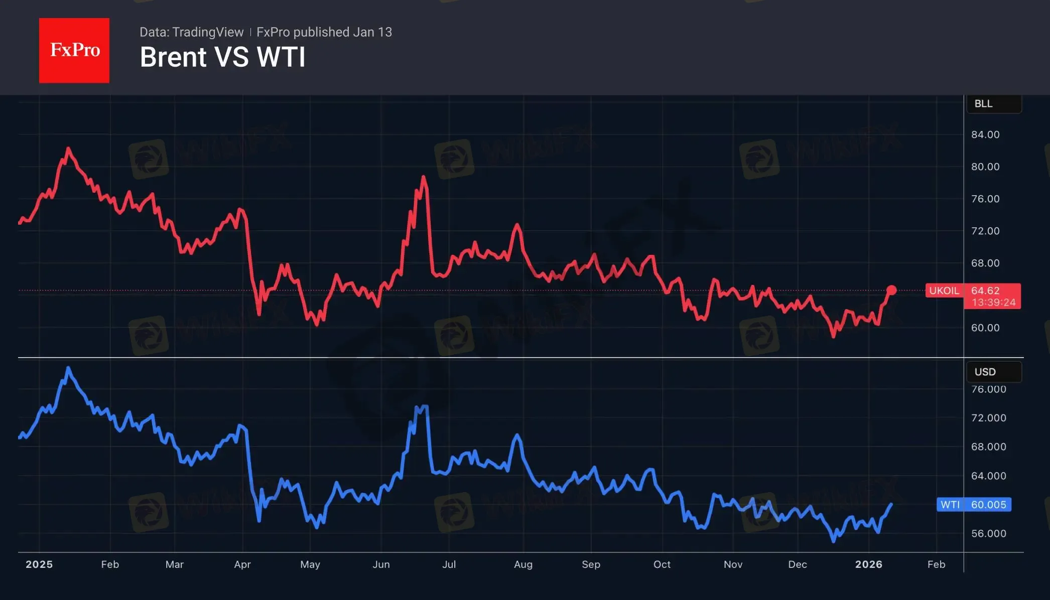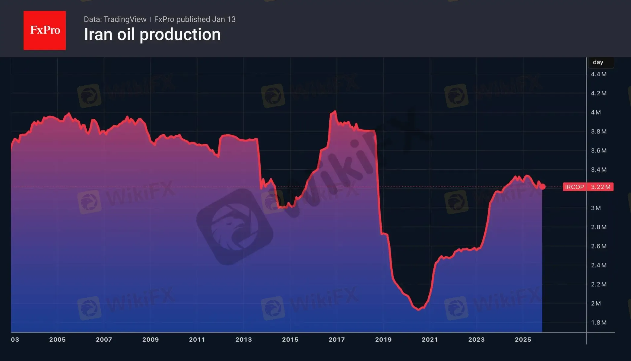 摘要:注:此文章由 FxPro 高级分析师 Alex Kuptsikevich 撰写尽管委内瑞拉局势的演变对油价构成了阻力,但伊朗相关局势却为油价提供了明确支撑。市场预期拉美地区低价原油供应激增,推动布伦特原油价格跌至八个月来的最低点。不过,中东地区紧张局势持续升级,帮助北海原油止跌企稳并迎来反弹。这波延续四天的原油涨势凸显出地缘政治风险溢价再度回升。根据凯投宏观(Capital Economics)分