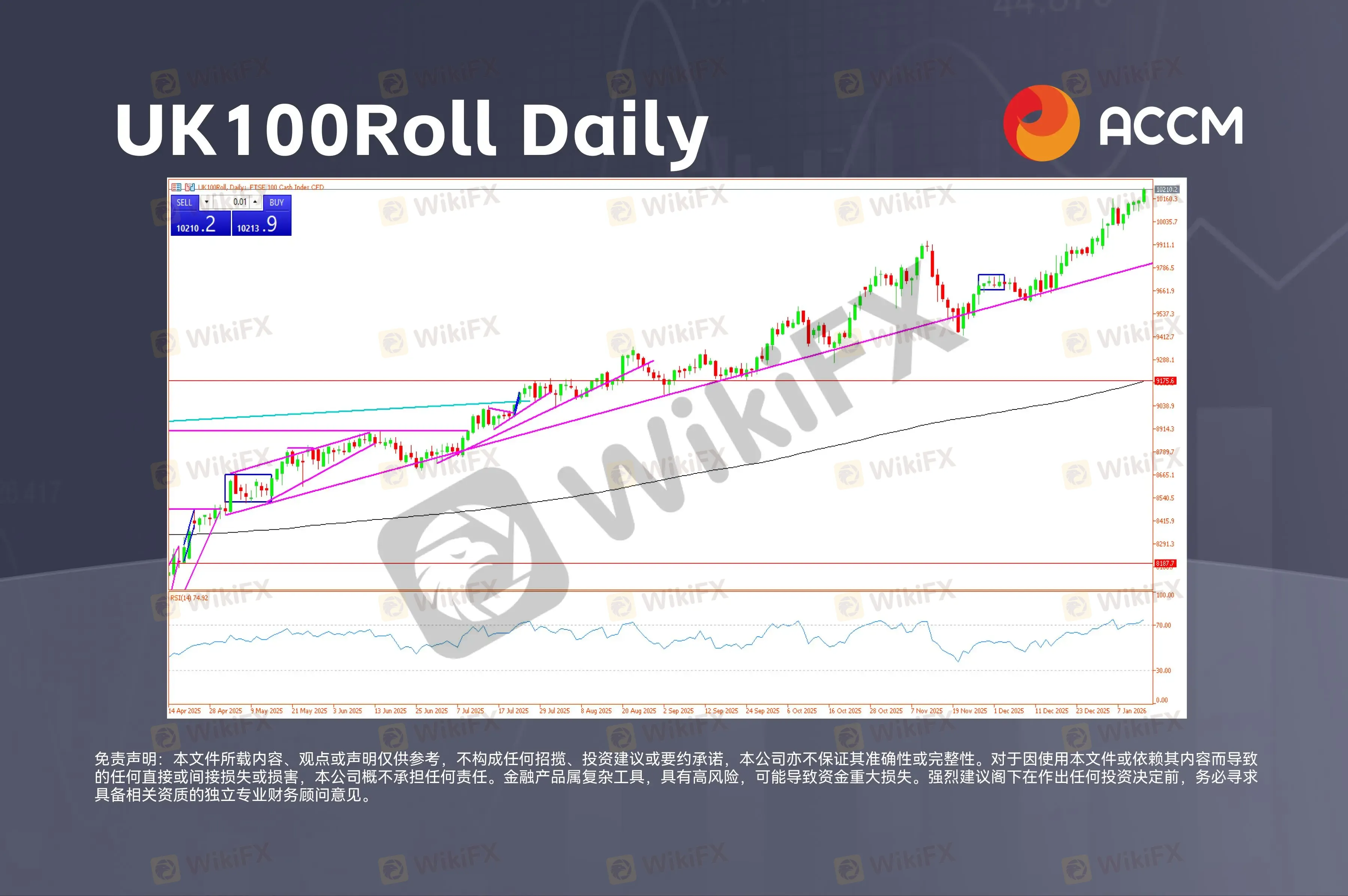 ACCM:英国股指UK100持续发力,英镑兑美元测试关键点位