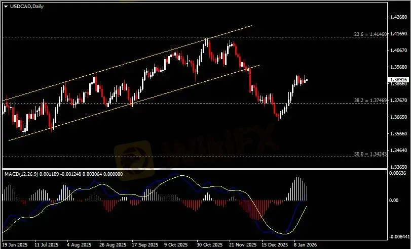 日线图显示美元兑加元涨势暂缓,当前仍企稳于1.3750支撑。从MACD来看,快慢线向上运行,白色动能柱则温和收缩。汇价走势基本和动能柱的变化一致。