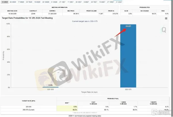 市场主流预期认为,美联储将维持3.5%至3.75%的联邦基金利率不变。据CME“美联储观察”:美联储维持利率不变的概率为99.2%,降息25个基点的概率仅为0.8%,几乎可以肯定美联储在本次决议上不会降息。