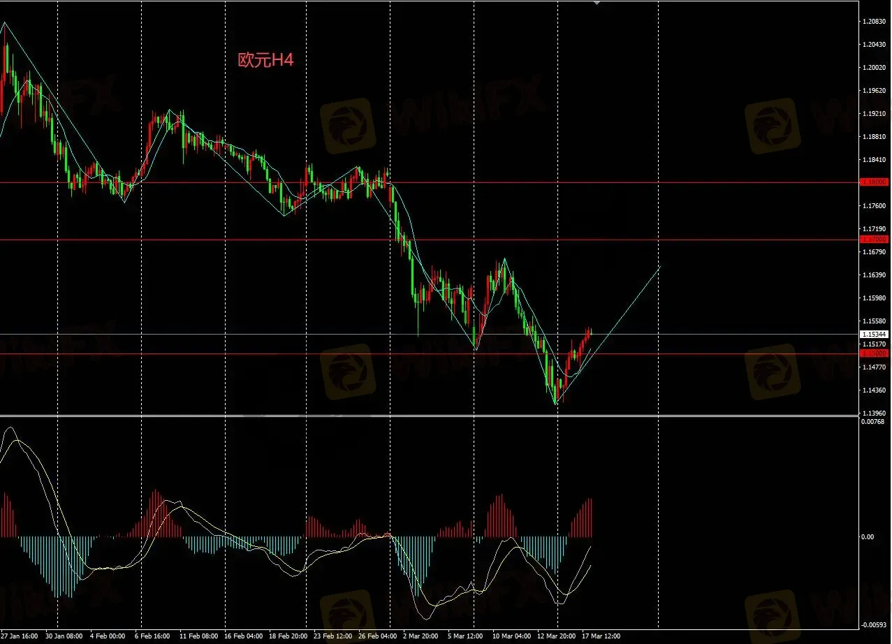 H4图表汇价,处于反弹走势,后市或持续走高,短期可入场做多目标1.165;但始终牢记当前仍为空头结构。