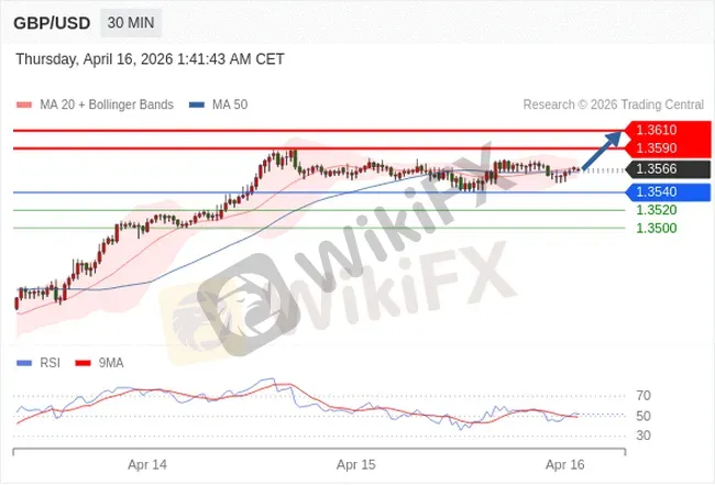 交易策略: 在 1.3540 之上,看涨,目标价位为 1.3590 ,然后为 1.3610。