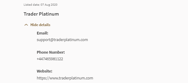 “投资者警示名单 投资者警示名单提供了一份名单,根据 MAS 可获得的信息,这些人员:i) 可能或可能被错误地认为是获得许可或以任何其他方式由 Mas 授权或监管的;ii) 已经做出商业信托或集体投资计划中的单位要约可能被或可能被错误地认为是经 MAS 授权、认可或注册的;iii) 已做出可能或可能被错误地认为是的投资要约在向 mas 提交或注册的文件中制作或附有该文件。此清单并非详尽无遗,而是基于 mas 在发布时所知的内容。上市日期:2020-08-07 Trader Platinum隐藏详细信息 电子邮件:support@traderplatinum.com 电话号码:+447465981122 网站:https://www.traderplatinum.com