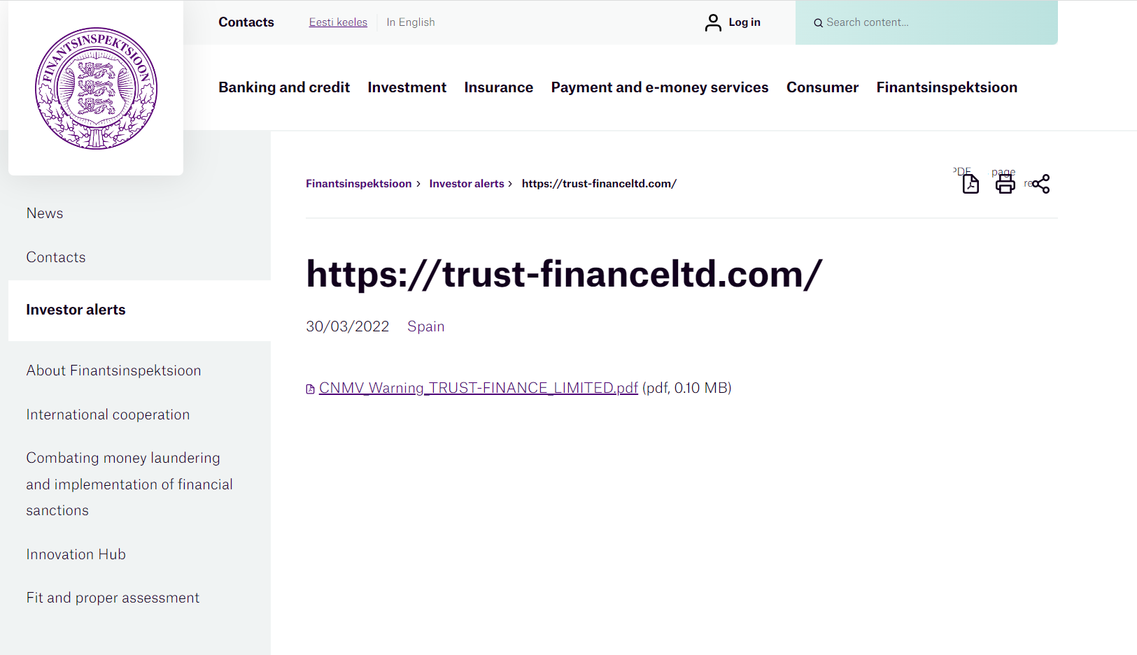 https://trust-financeltd.com/ 30/03/2022 西班牙 CNMV 根据《证券市场法》第 17 条第 2 款向公众发出有关未注册公司的警告(经皇家立法令 4/2015 批准的重订文本, 10 月 23 日),国家证券市场委员会 (Comisión Nacional del Mercado de Valores) 警告称:https://trust-financeltd.com/ 无权提供《西班牙证券市场法》第 140 条规定的投资服务,其中包括投资建议,或提供该法第 141(a)、(b)、(d)、(f) 和 (g) 条详述的与该法第 2 条所述金融工具相关的辅助服务行为,包括为此目的进行的外币交易。如有任何疑问,请联系 Comisión Nacional del Mercado de Valores 咨询热线 900 535 015 或访问 CNMV 网站 (www.cnmv.es)。 2022 年 3 月 28 日.