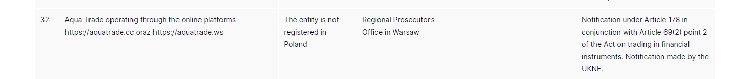 通过在线平台运营的水产贸易 https:// Aquatrade.抄送奥拉兹 https:// Aquatrade.该实体未根据《华沙通知》第 178 条以及《金融工具交易法》第 69(2)条第 2 点在波兰地区检察官办公室注册。联合王国国家部队发出的通知。