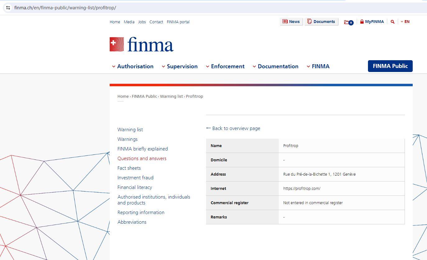 未经授权的公司和个人警告名单 警告名单 -https://profitrop.com/.