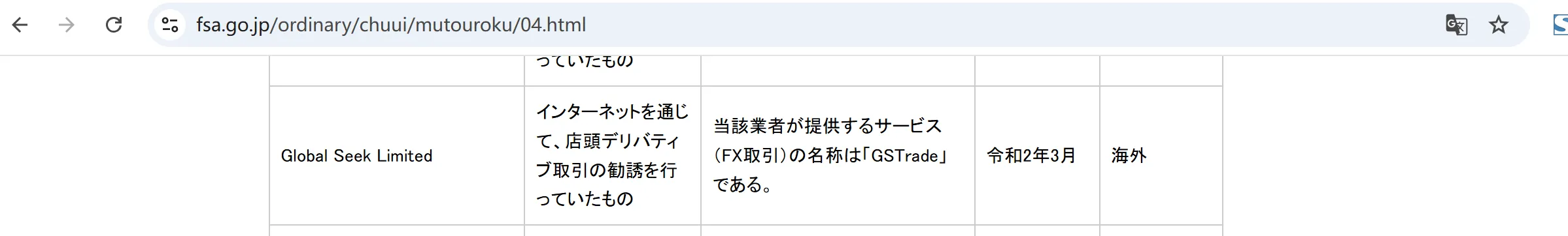 通过互联网进行场外衍生品交易招揽活动 该经营者提供的服务(外汇交易)名称为「GSTrade」。 \n2020年3月 \n海外