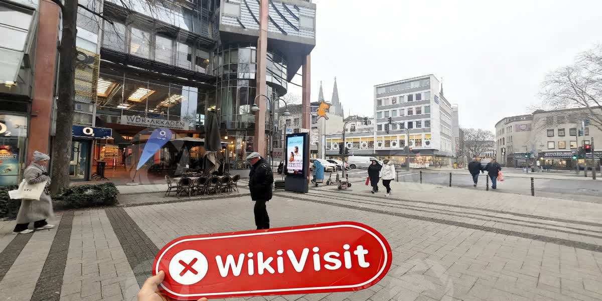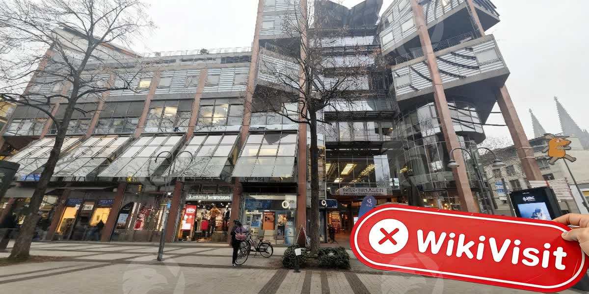 实勘人员顺利抵达目标商场,该地点位于科隆市市中心的繁华街道,周边环境繁华,商业氛围浓厚。商场外面有里面商家的水牌,但水牌上没有显示US iDeals的信息。
