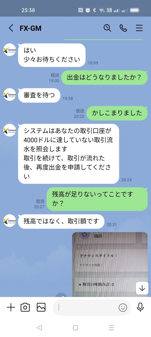 ラインの初心者投資学習グループというグループから誘導されExtrendCapの口座を開設し、数回の取引後引き出しの依頼をしたら拒否されました。 少額を依頼しても拒否。 埒が明きません。