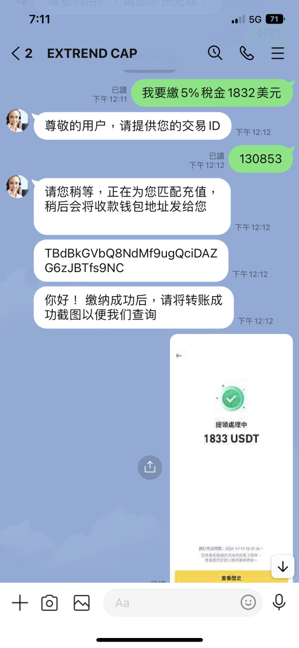 該用戶未證明是ExtrendCap的交易者
