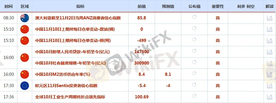 摘要:CWG Markets市場資訊 2025年11月10日(周一)匯訊摘要:上周五,因美國聯儲局前景不明及美國政府停擺,美元指數先升後跌,盤中一度跌至99.38的日內低位,最終收跌0.13%,報99.53,結束周線兩連升勢;基準的10年期美債孳息率最終收報4.104%,對聯儲局政策利率敏感的2年期美債孳息率收報3.568%。現貨黃金守住上周五漲勢,上周五金價上漲0.6%,成功收復4000整數關口。市場