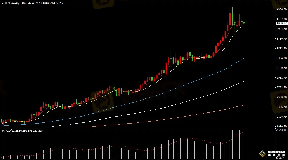 上周五晚美盤上半段現貨黃金振盪上漲最高至4100.88美元/盎司,淩晨後金價轉跌回落,最終報收4064.80美元/盎司,收跌0.30%,周線下跌0.38%;現貨白銀最終報收50.023美元/盎司,收跌1.20%,周線下跌1.05%。