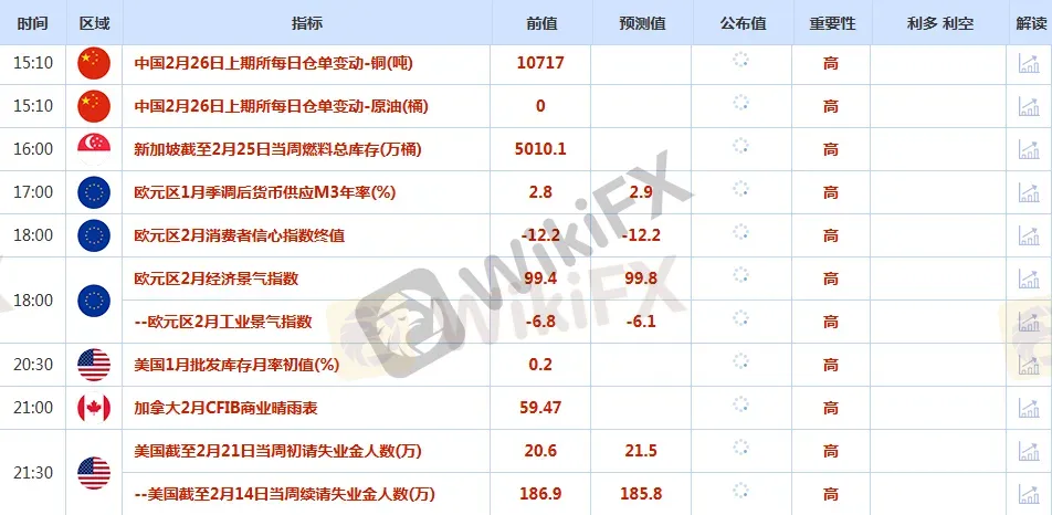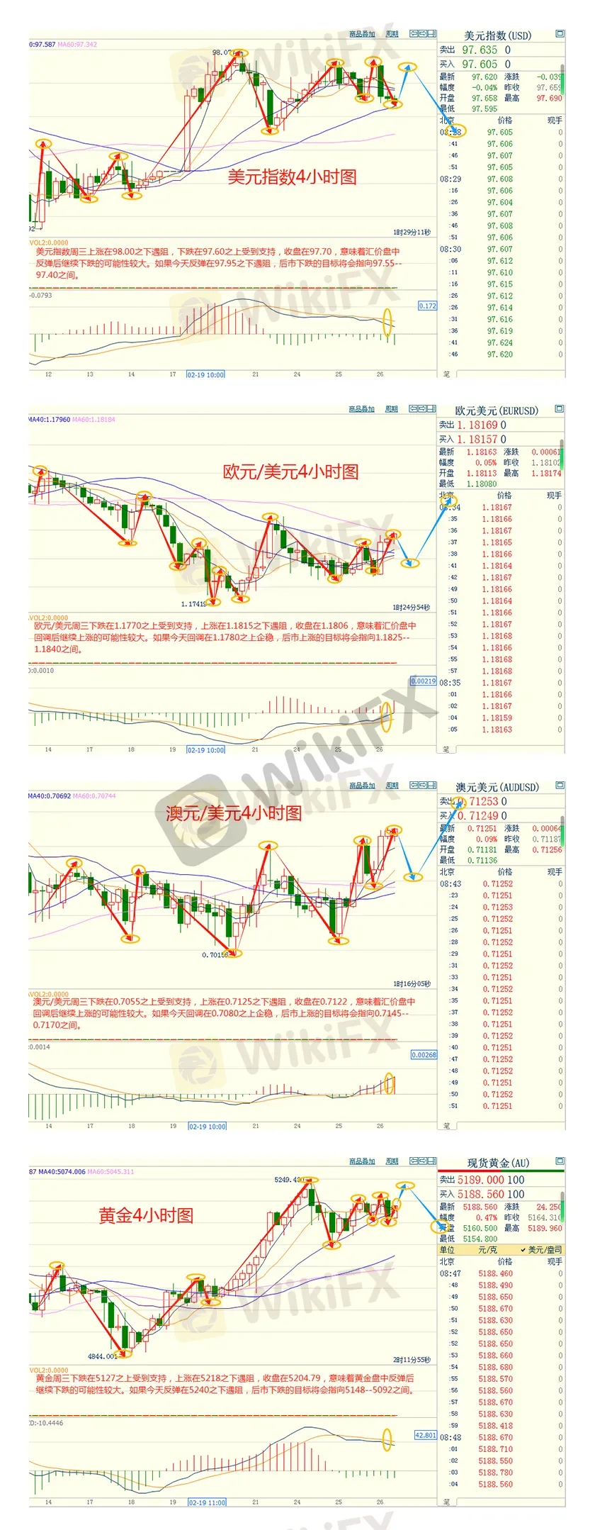 摘要:CWG Markets市場資訊2026年2月26日(週四):匯訊摘要:週三,隨著市場情緒改善,美元失去強勢。美元指數收跌0.01%,報97.67;隨著風險偏好回暖、股市上漲削弱了避險資產的需求,美國國債收益率延續漲勢。基準的10年期美債收益率收報4.056%,對聯準會政策利率敏感的2年期美債收益率收報3.475%。週三,現貨黃金價格上漲0.4%,收報至5164美元/盎司附近,盤中一度飆升1.5%觸